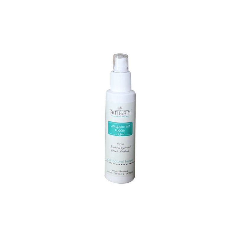 Mint water (hydrosol) is 100% natural product derived from the steam-distillation of the overground part of the mint plant(Mentha piperita). It is separated from the essential oil, after the distillation process, containing tiny particles of the oil, embedded in the liquid. It is used in aromatherapy, as a skin-toner, both on the face and the body,